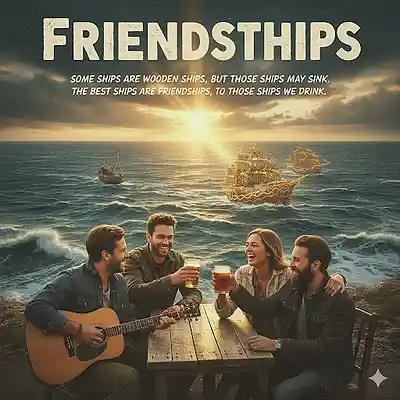 I found a quote that goes: "Some ships are wooden ships, but those ships may sink. The best ships are friendships, to those ships we drink". I thought, that's cool, so I wrote a song around it. This is "Friendships" and it's dangerously catchy.